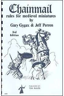 Chainmail: Rules for Medieval Miniatures is a medieval miniature wargame released by Guidon Games in March 1971, and later republished by TSR. It was written by Jeff Perren and Gary Gygax.