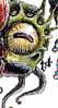The gauth is a type of beholder that feeds on magic. It has a spherical body with a central eye and six eyestalks like other beholders, but its central eye is ringed by several smaller eyes, and it possesses four feeding tendrils that dangle near its maw.