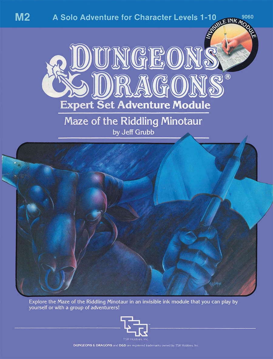 M2/MSOLO2 Maze of the Riddling Minotaur is a 32-page sourcebook for Basic Dungeons & Dragons released in July 1983.